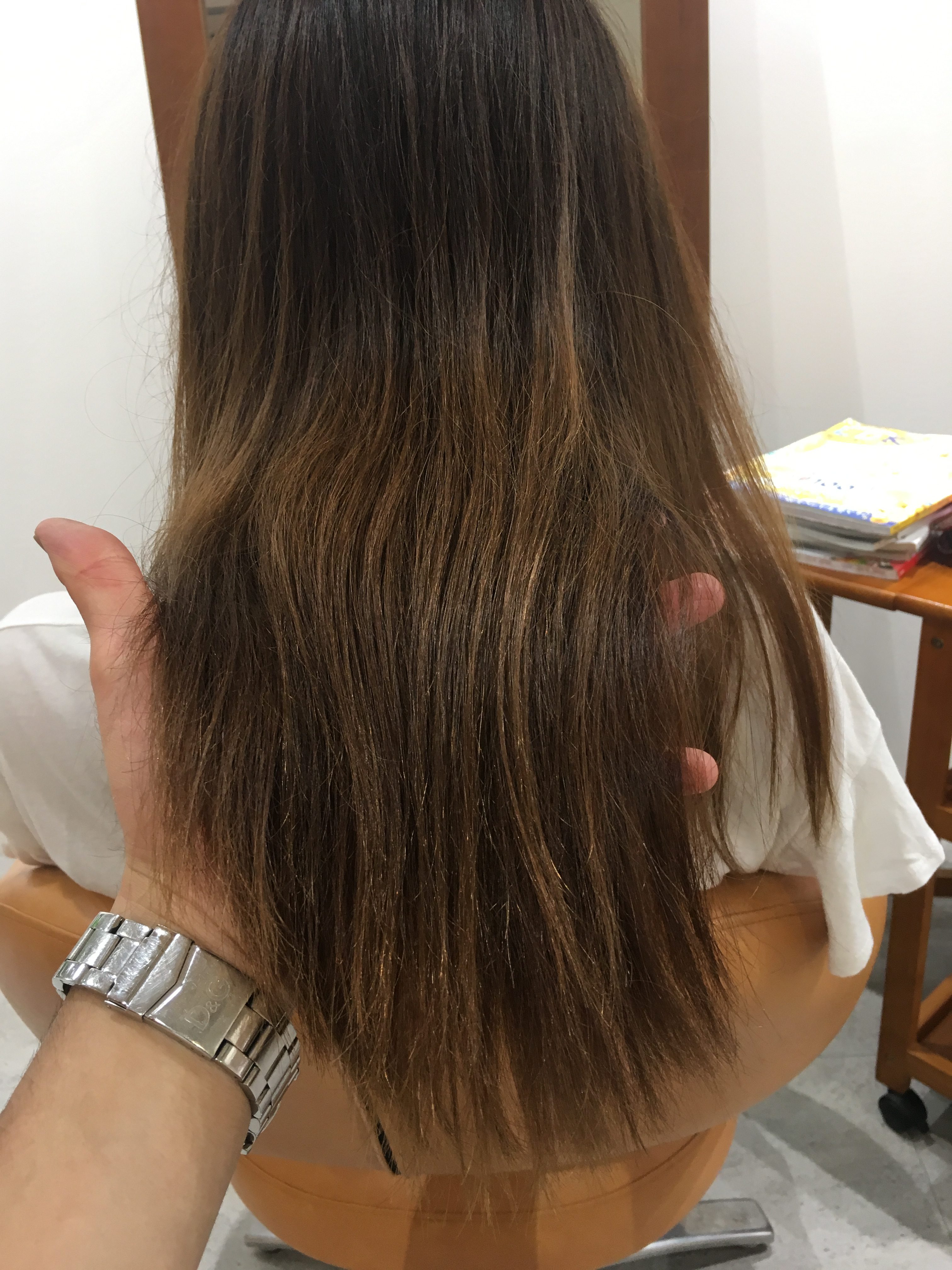 定期的なヘアカラー(ホームカラー)もあり毛先がパサパサ気味に