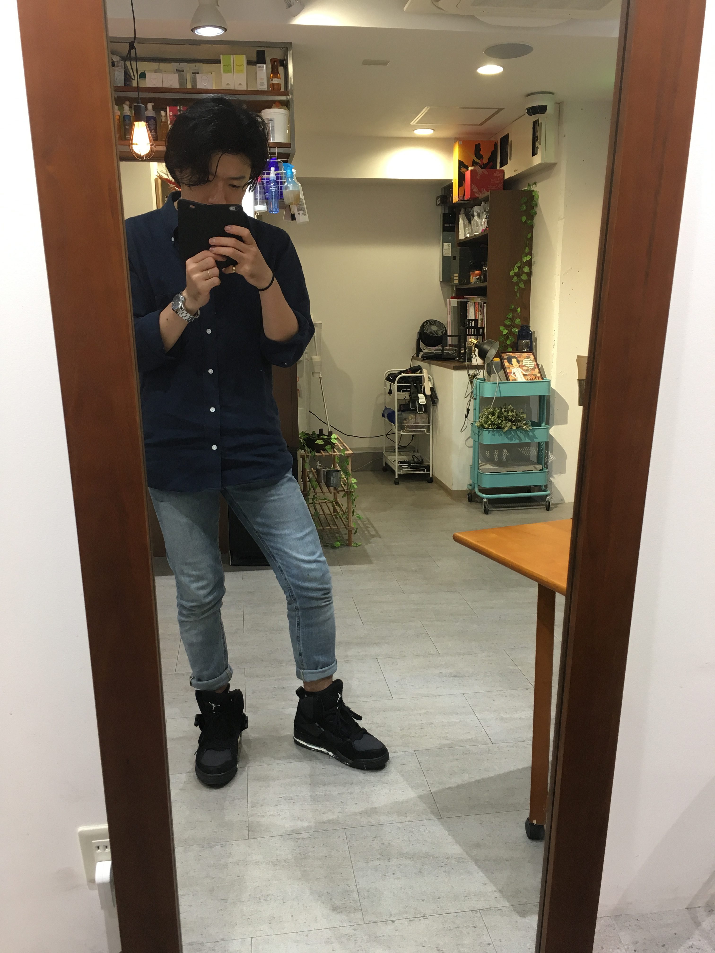 下から見た、鏡越しに見た、店内
