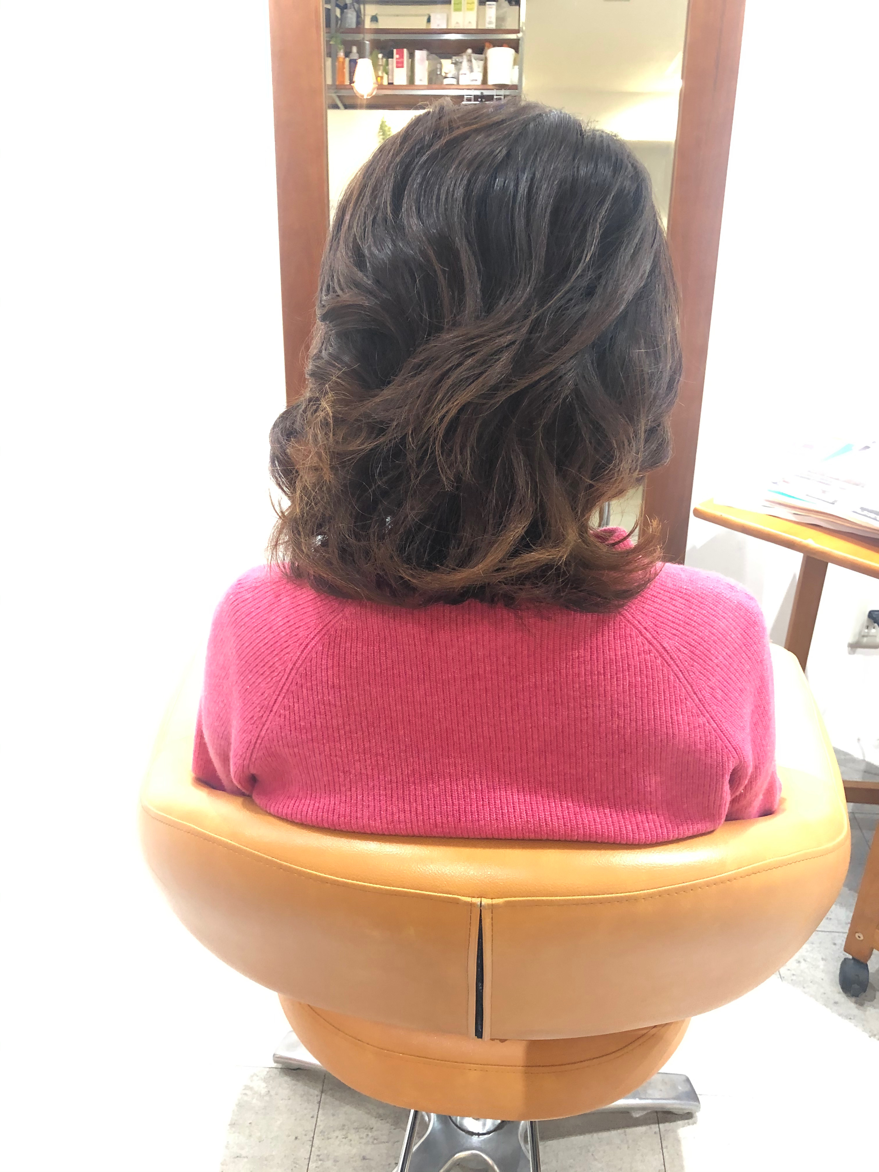今日は毛先に一回転のパーマでの動きをご希望と